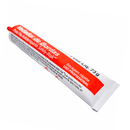 O vedador de bordas não tem como objetivo "prender" as laterais da fita antiderrapante, portanto não deve ser aplicado sobre esta. Deverá ser aplicado apenas um filete (aproximadamente 1 mm de espessura) nas extremidades da fita antiderrapante e em contato com o piso.